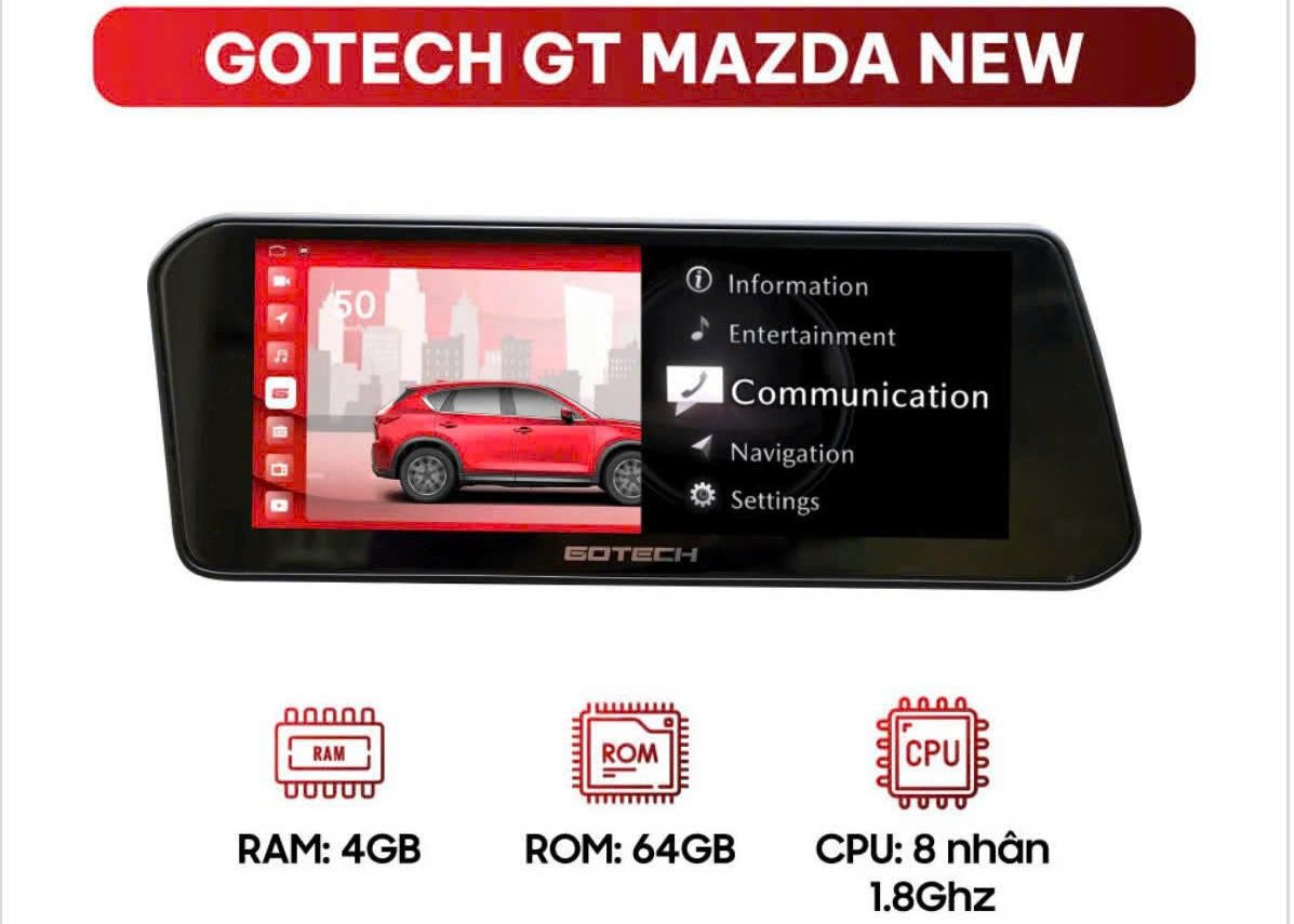 Màn hình ô tô thông minh GT Mazda New là dòng sản phẩm độc quyền của GOTECH, tạo riêng cho các dòng xe Mazda CX30 và Mazda 3 từ năm 2020 trở đi. GT Mazda New không chỉ cung cấp các tính năng giải trí và an toàn tiên tiến mà còn duy trì tích hợp hoàn hảo với các tính năng sẵn có trên xe, nhờ việc kết hợp hai hệ điều hành Mazda Connect và Android 10 một cách song song. Điểm đặc biệt nữa là dòng sản phẩm GT Mazda New đi kèm với chế độ bảo hành 2 năm 1 đổi 1, mang lại nhiều ưu đãi cho khách hàng trong quá trình sử dụng và trải nghiệm sản phẩm.