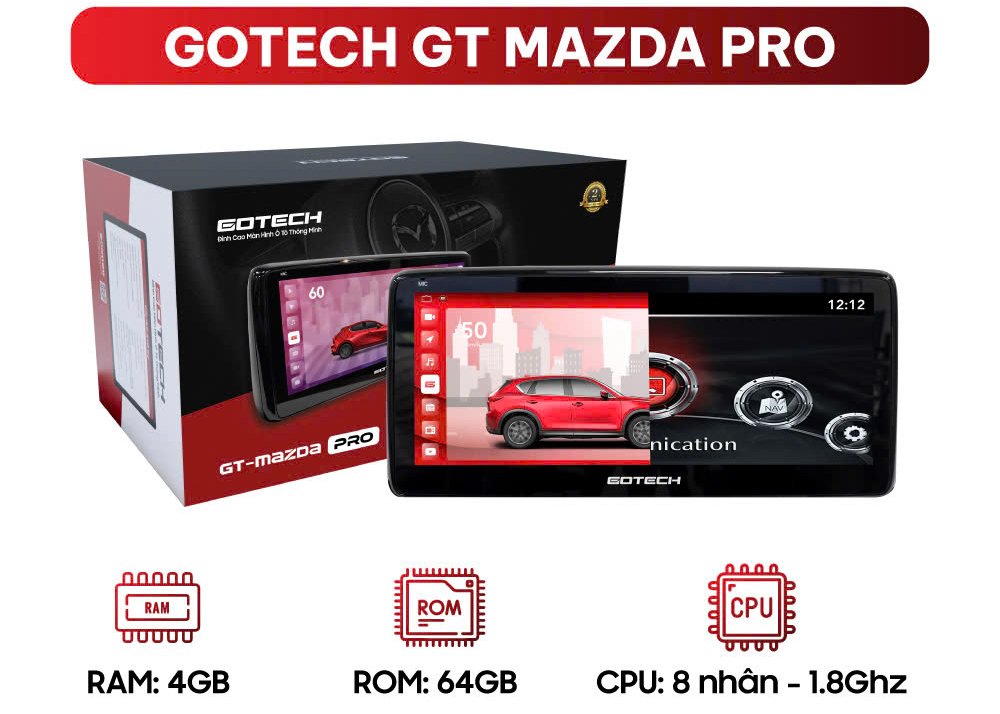 Màn hình ô tô thông minh Gotech GT Mazda Pro là một lựa chọn hoàn hảo dành riêng cho các dòng xe Mazda, được phát triển bởi GOTECH. Với khả năng cung cấp các tính năng giải trí và an toàn mới, sản phẩm này đồng thời vẫn giữ được tính hợp nhất với các tính năng hiện có của xe nhờ vào việc sử dụng hai hệ điều hành Mazda Connect và Android 10. Điều đặc biệt là chế độ bảo hành 2 năm 1 đổi 1 được áp dụng cho dòng sản phẩm GT Mazda Pro, mang lại nhiều lợi ích và an tâm cho khách hàng trong quá trình sử dụng và trải nghiệm sản phẩm.